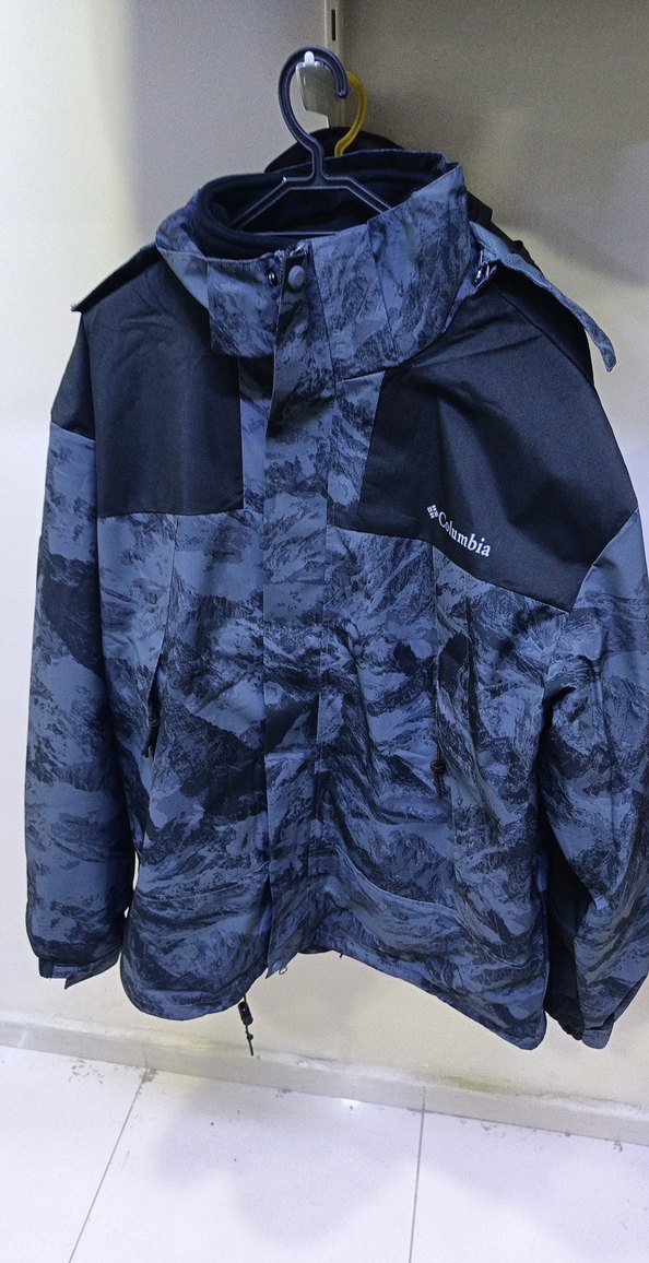 Columbia marka, mavi kamuflaj desenli, sentetik kumaştan, kapüşonlu, fermuarlı ve uzun kollu erkek mont. Rahat kesim ve outdoor stil için uygundur.
