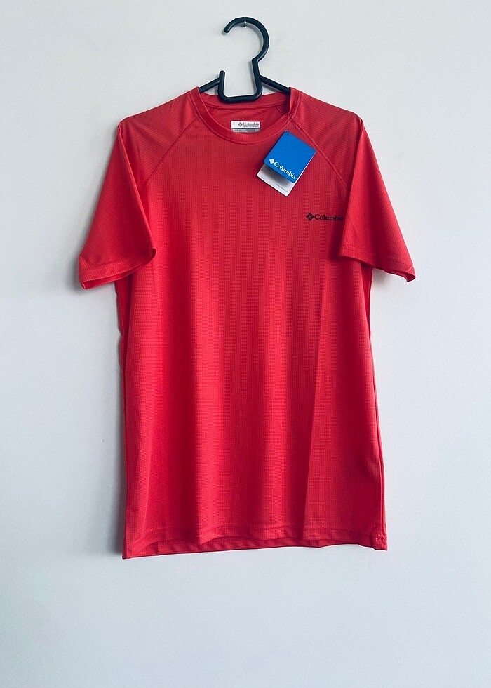 Columbia orijinal yeni etiketli S-M bedene uyumlu Unisex klima kumaş pembe tişört Harika bir ürün etiketi üzerinde uygun fiyatlı logolu tişört