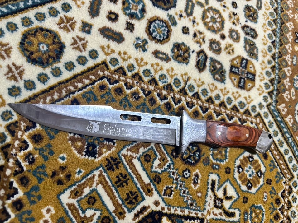 Columbia paslanmaz çelik bıçak, koyu kahverengi ahşap sap ve havalandırma delikli keskin bir bıçağa sahiptir. Dayanıklı ve klasik tasarımlıdır. Amerikan ürünü