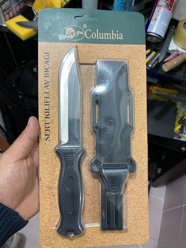 Columbia markalı sert saplı av bıçağı ve koruyucu kılıfı ile birlikte sunulur. Dış mekan kullanımı için uygundur.