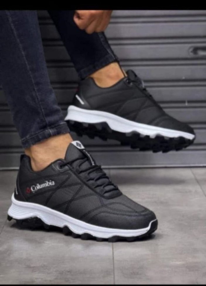 Columbia markalı siyah erkek spor ayakkabı, bağcıklı ve kauçuk tabanlıdır. Günlük kullanım için rahat ve dayanıklıdır.