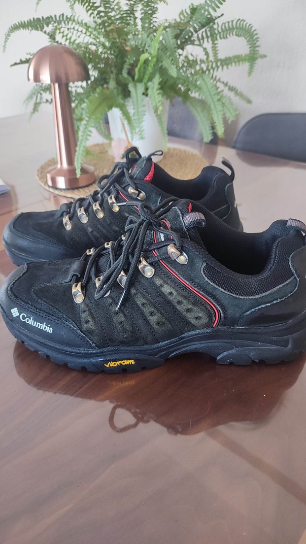 Columbia siyah erkek outdoor ayakkabılar, kauçuk tabanlı, baskılı detaylı ve bağcıklıdır, trend ve rahat stil için uygundur.