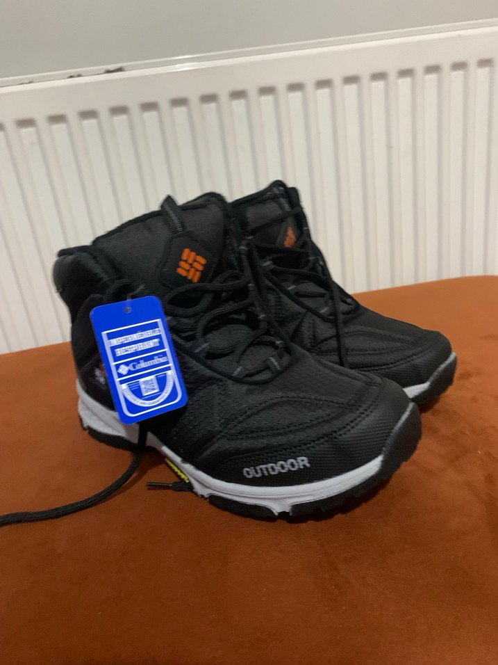 Siyah Columbia erkek outdoor ayakkabısı, kauçuk taban ve cırt cırtlı kapama özelliklerine sahip. Baskılı tasarımıyla sokak ve athleisure stiline uygun, rock punk havasında.