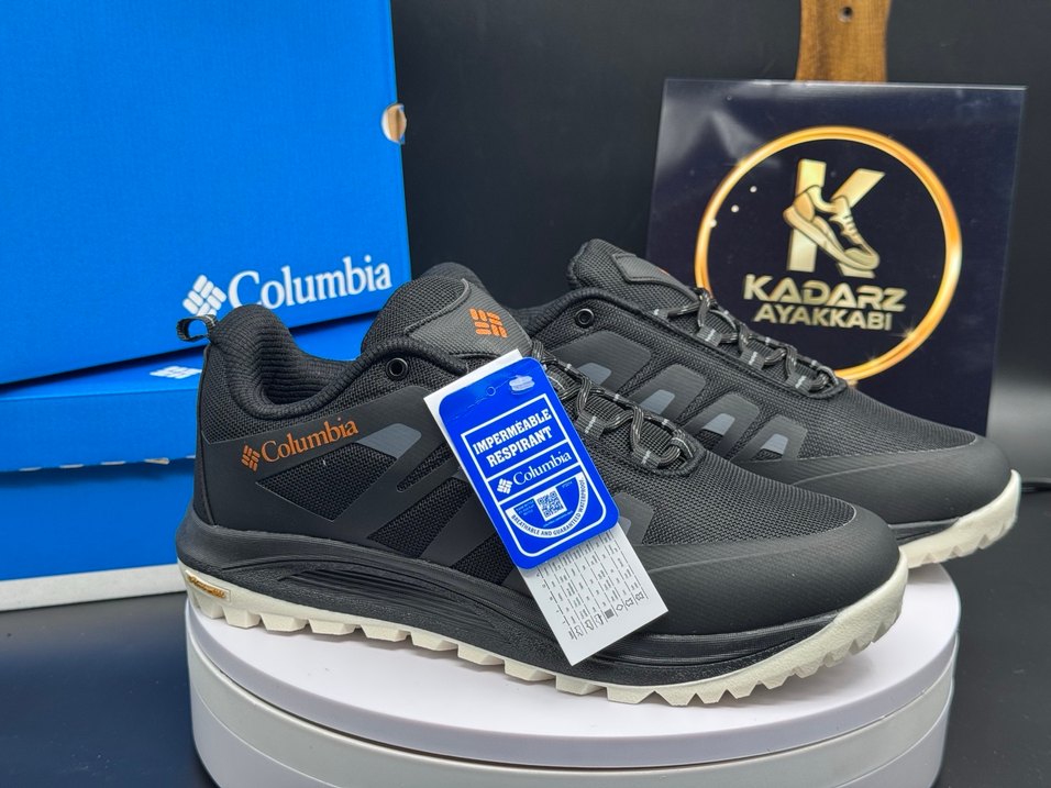 Columbia siyah erkek outdoor ayakkabılar, baskılı tasarım, Velcro kapanış ve kauçuk taban özelliklerine sahiptir. Su geçirmez ve nefes alabilir. 40-41-42-43-44 Numaraları mevcut.