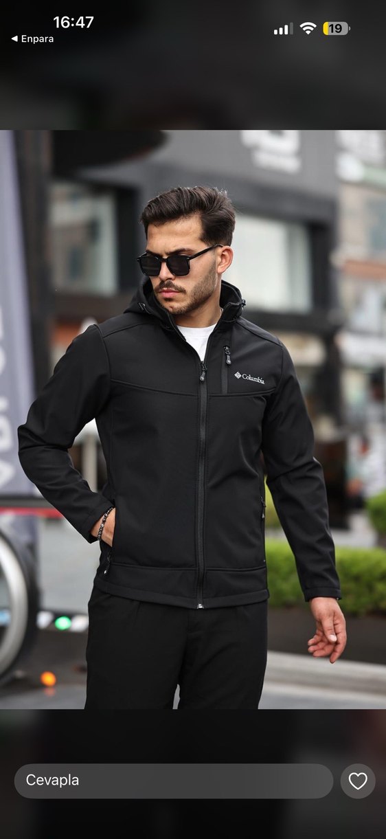 Columbia markalı siyah fermuarlı erkek ceket, uzun kollu ve normal midi boyda, yumuşak ve sıcak kumaştan üretilmiştir. Notlu yaka detayıyla dış mekan kullanımı için uygundur.