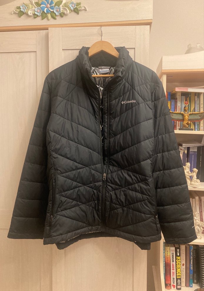 Columbia siyah mont, fermuarlı ve yüksek yakalıdır. Uzun kollu, normal midi boyda, yumuşak ve sıcak kumaştan yapılmıştır. Günlük kullanıma uygundur. Amerika’dan aldım büyük bedeni Türkiye’de yok 2x beden boyu 71cm iki kol arası 64 cm
