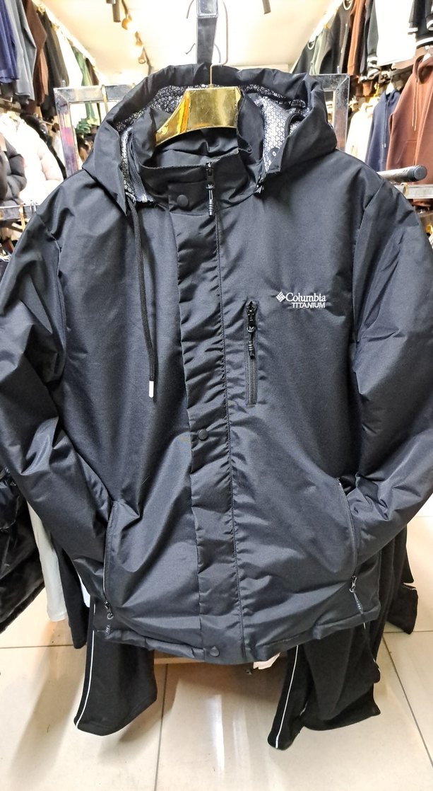 Columbia markalı siyah erkek mont, fermuarlı ön, uzun kollu ve bol kesim. Sentetik kumaştan, günlük kullanım için uygun sokak stili.