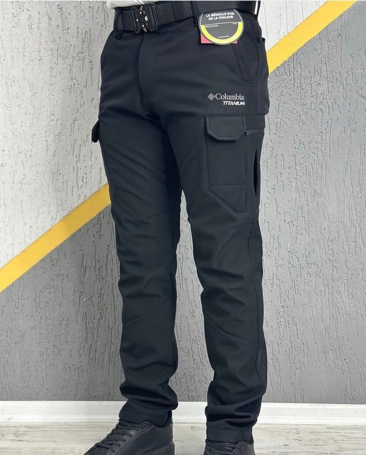 Columbia siyah renk, baskılı detaylı erkek pantolon. Yumuşak ve sıcak kumaştan, kemerli ve rahat kesim. Dış mekan kullanımına uygun.