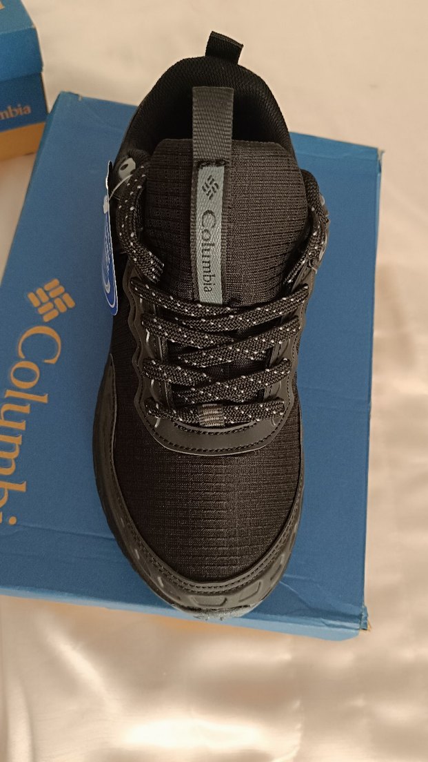 Columbia markalı siyah ayakkabı, taban ve ayarlanabilir spor ve günlük kullanıma uygun.