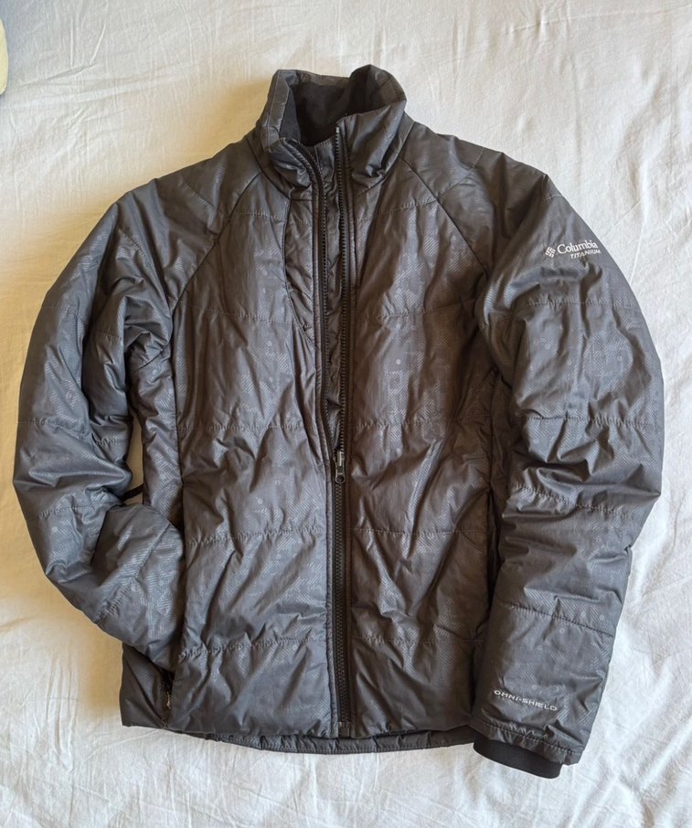 Columbia kayak ceketi, yüksek yakalı ve fermuarlı. Uzun kollu, gri renkte, yumuşak ve sıcak kumaştan, günlük kullanım için uygun. 7-8-9 yaşa uygun❄️