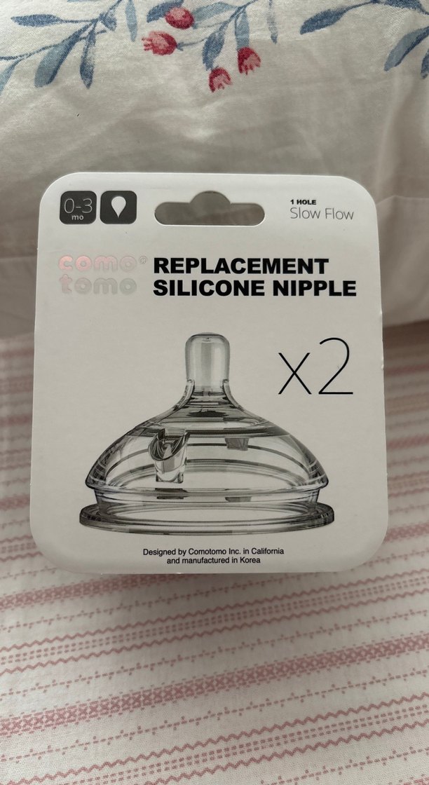 Comotomo markasına ait, 0-3 ay arası bebekler için yavaş akışlı silikon biberon emziği, 2 adet paket halinde. İsterseniz elimde büyük boy yeşil biberonuda mevcut fakat onu açıp bir defa denedim.Bebeğim reddetti malesef