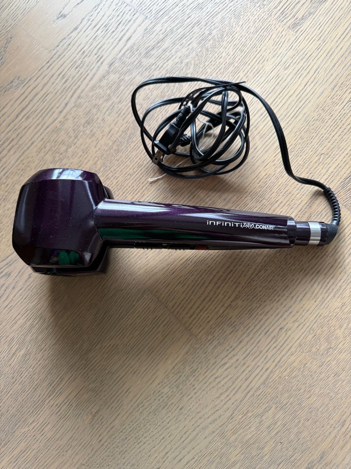 Conair Infiniti Pro otomatik saç maşası. ABD’den aldım. Ufak bir priz dönüştürücüsüyle rahatlıkla kullanabilirsiniz. Voltaj farkını sıfırlamak için transformatöre gerek yok. Amazon’da kullanılmış ürün 52 ABD Doları’na satılıyor. Kutusu yok. Ürün fotoğraftaki gibi gönderilecek. Saçınızı otomatik sarmasının ardından 3 bip sesinin sonunda saçınızı makinadan çekmeniz için kendi sinyal veriyor. Yani saç yanması gibi bir durum sözkonusu değil. İnce telli saçı olanların biraz yağlanmış saçla kullanmasını tavsiye ederim. Yoksa temiz ince saçlar otomatik makaraya kolay takılabiliyor.