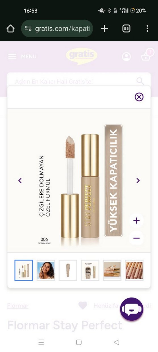 Çizgileri dolduran özel formüle sahip bej kapatıcı, yüksek kapatıcılık sunar. 006 numara doğal ve pürüzsüz görünüm sağlar. ✨ rengi uymadı bir defa az bişey kullanıldı
