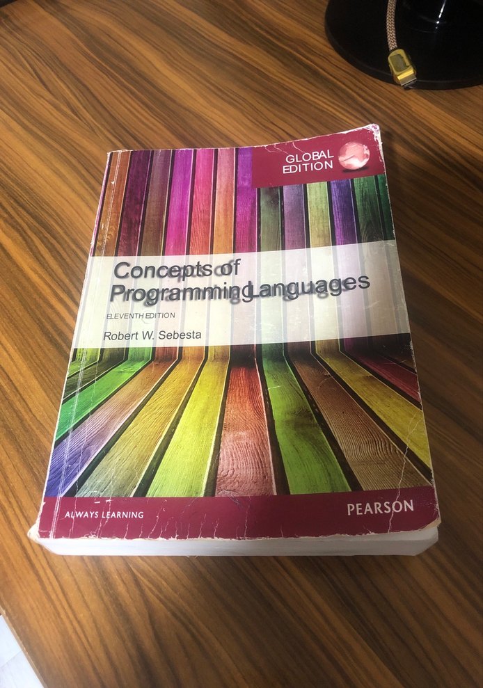 Robert W. Sebesta'nın "Concepts of Programming Languages" adlı kitabı, programlama dillerinin temel kavramlarını içerir. Pearson tarafından yayımlanmıştır. Orijinal değildir fotokopi baskıdır okunabilir herhangi bir problemi yok çoğu sayfası temiz 30 sayfa kadar kurşun kalemle üstünde notlar vardır silinebilir