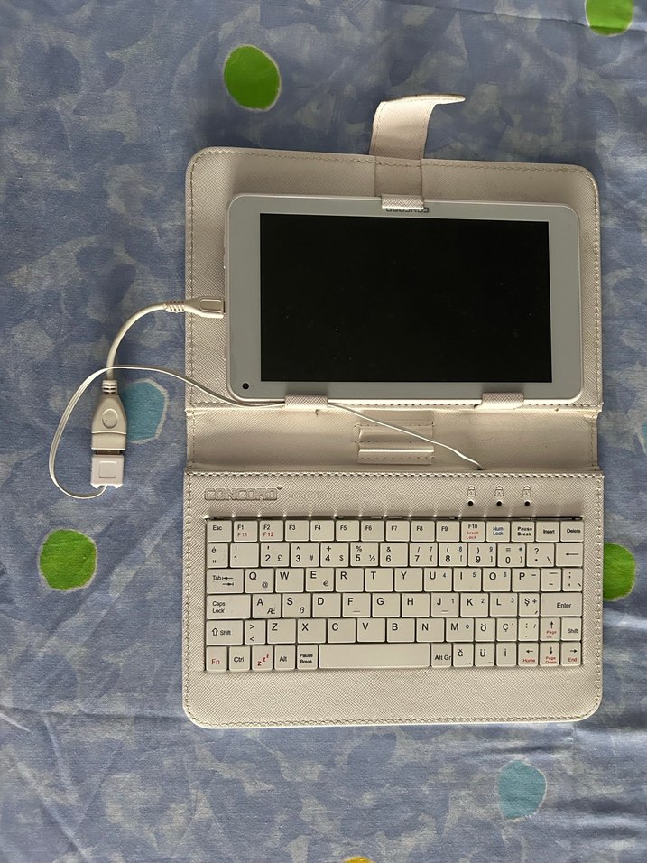 Concord marka tablet, klavyeli kılıf ile birlikte satılıktır. Tablet bazen çalışıyor, bazen açılmıyor. Bu nedenle arızalı / sorunsuz garanti yoktur. Klavyesi sağlam ve sorunsuz çalışmaktadır. Kılıf ve klavye temiz durumdadır. Parça olarak, tamir için veya klavyeli kılıf ihtiyacı olanlar için uygundur. Durum: • Tablet: Arızalı (bazen çalışıyor) • Klavye: Çalışır durumda • Kılıf: İyi durumda