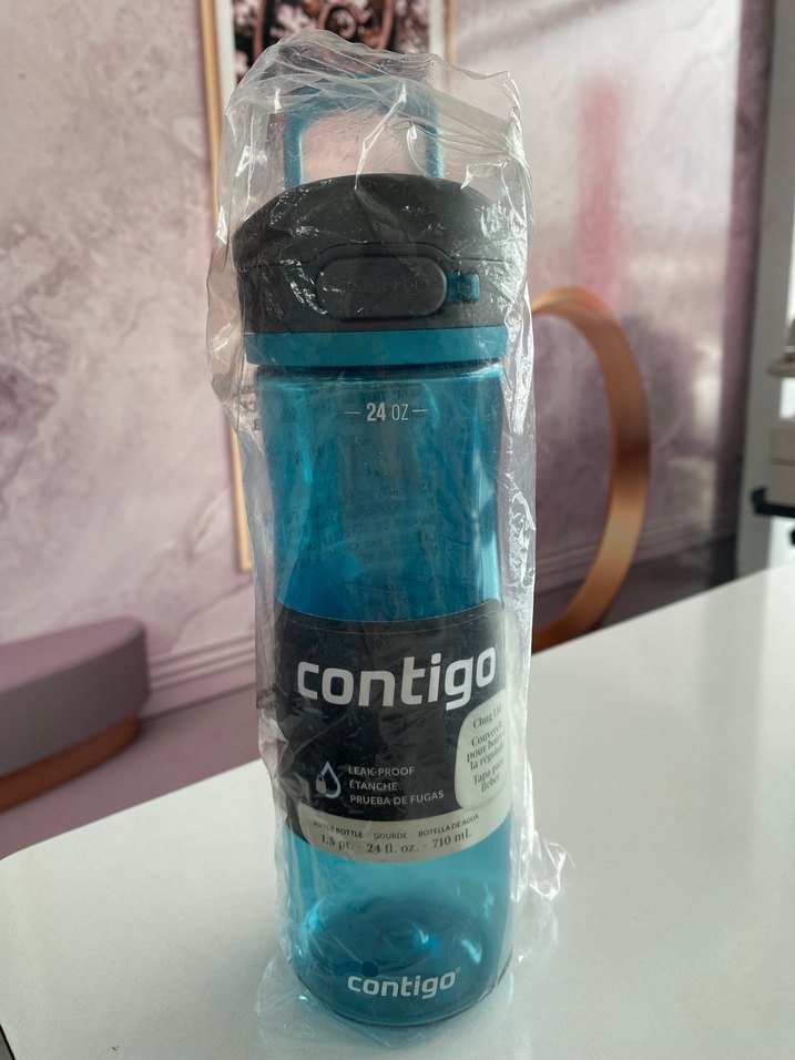 Contigo markalı, 710 ml kapasiteye sahip koyu mavi renkli termos şişesi. Sızdırmaz tasarımıyla içeceklerin güvenle taşınmasını sağlar.