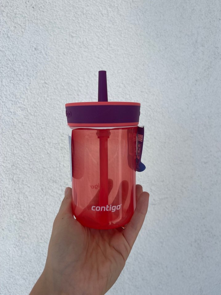 Contigo marka koyu kırmızı renkli, pipetli bebek biberonu, kullanımı kolay ve dayanıklıdır. BPA içermez.