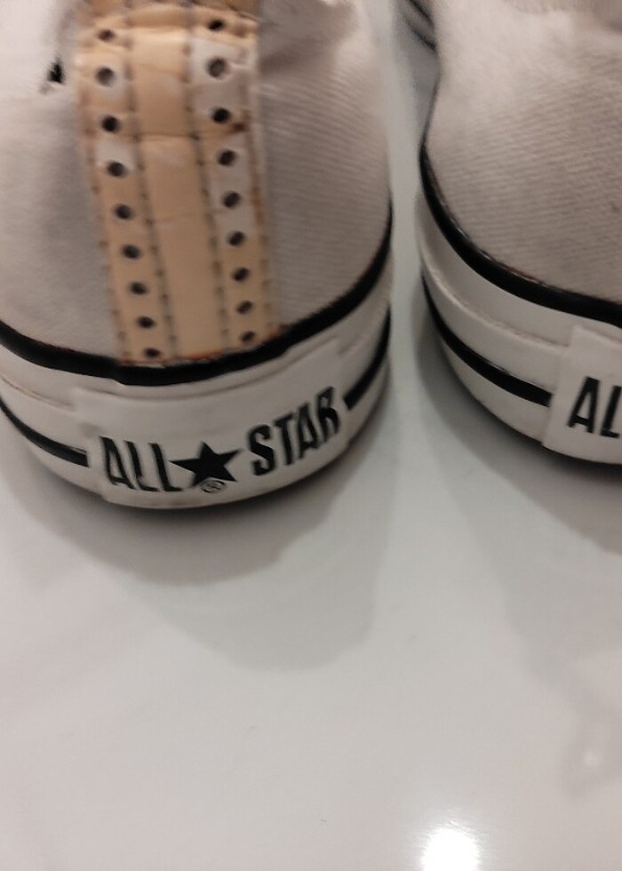 38 numara Converse beyaz ayakkabı. 4_5 senedir dolapta bekliyor. Beyaz deri yerleri sararma olmus. Beyaz boya ile düzeltilebilir.