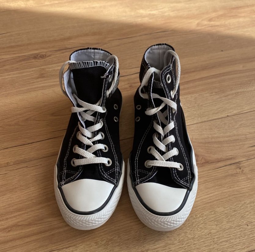 Siyah bağcıklı, düz tabanlı kauçuk kadın spor ayakkabısı, günlük kullanım için gotik tarzda. 37 no