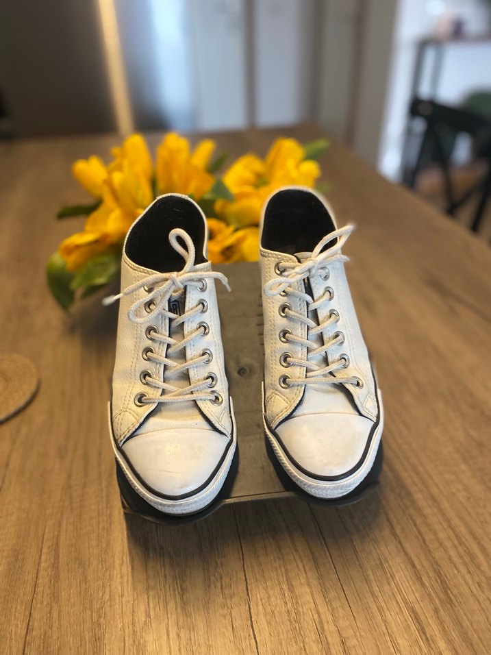 Ürünmde hiçbir sıkıntı yok sadece kullanıma bağlı ufak çizikler var yırtığı söküğü yoktur içi sıcak tutan bir astara sahipdir rahat kauçuk tabanlı tam kalıp ayakkabı #sporayakkabı #beyaz #converse