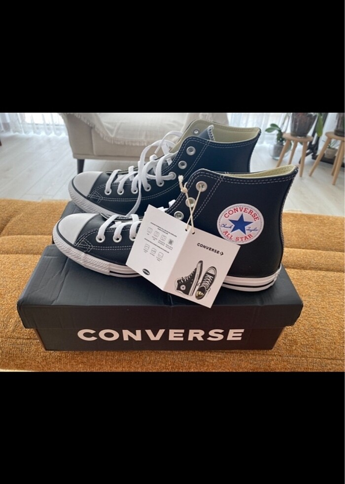 Siyah bilekli deri orjinal 43 numara Converse ayakkabı.Hiç giyilmedi etiketi üzerinde.Kendi mağaza fiyatı 4000₺.İade kabul etmiyorum ve fiyat sondur