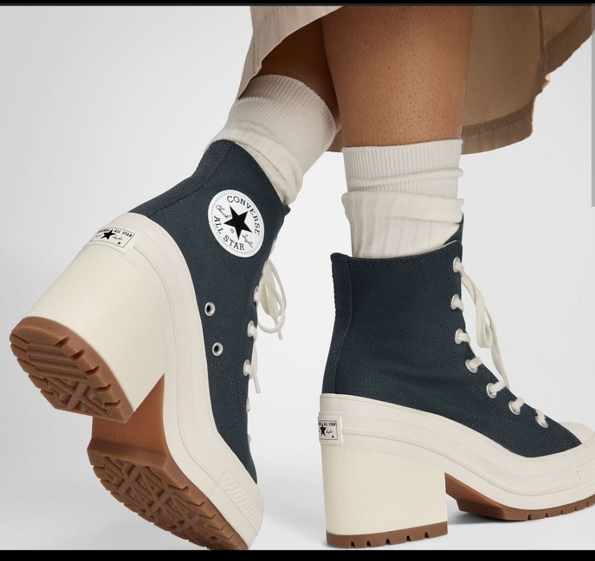 Converse spor ayakkabılar, kolay giyim için elastik detaylar ve blok topuk içerir. Gri ve beyaz tasarım, klasik All Star baskılı logo ile günlük kullanıma uygun athleisure tarzı sunar. ⚡