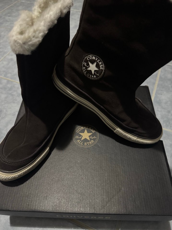 Converse markalı, kahverengi kauçuk malzemeden üretilmiş, kürk detaylı erkek diz boyu çizme. Rahat ve şık, günlük kullanım için uygundur.