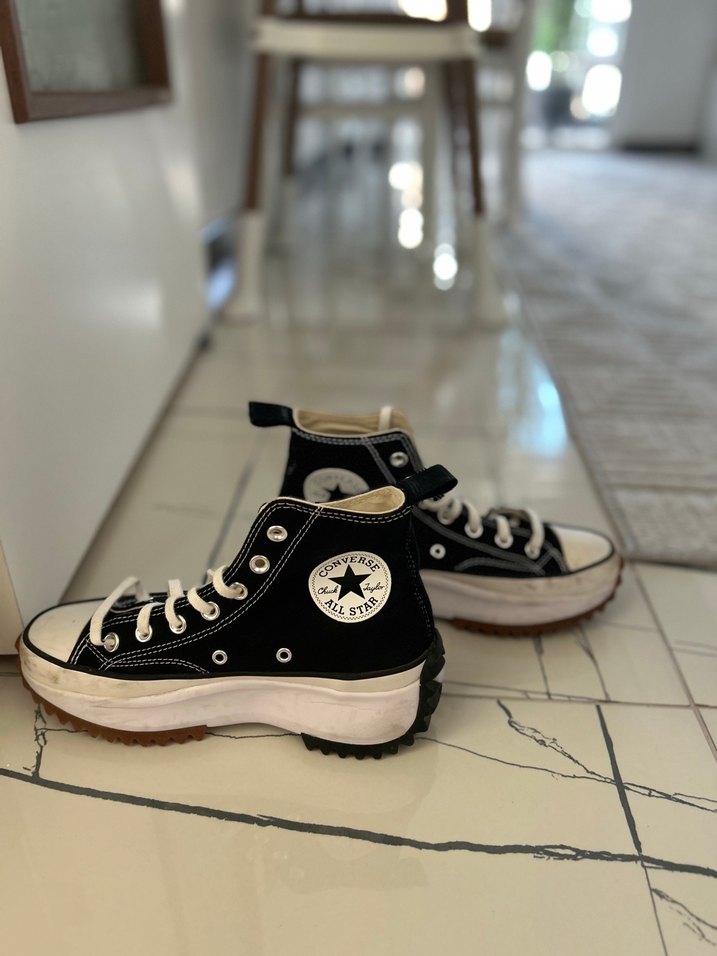Siyah renkte, platform tabanlı ve kauçuk tabanlı kadın spor ayakkabısı. Ürüne sıfıra yakındır. 2 kere giyildi hiç bir sorunu yoktur tertemizdirrr