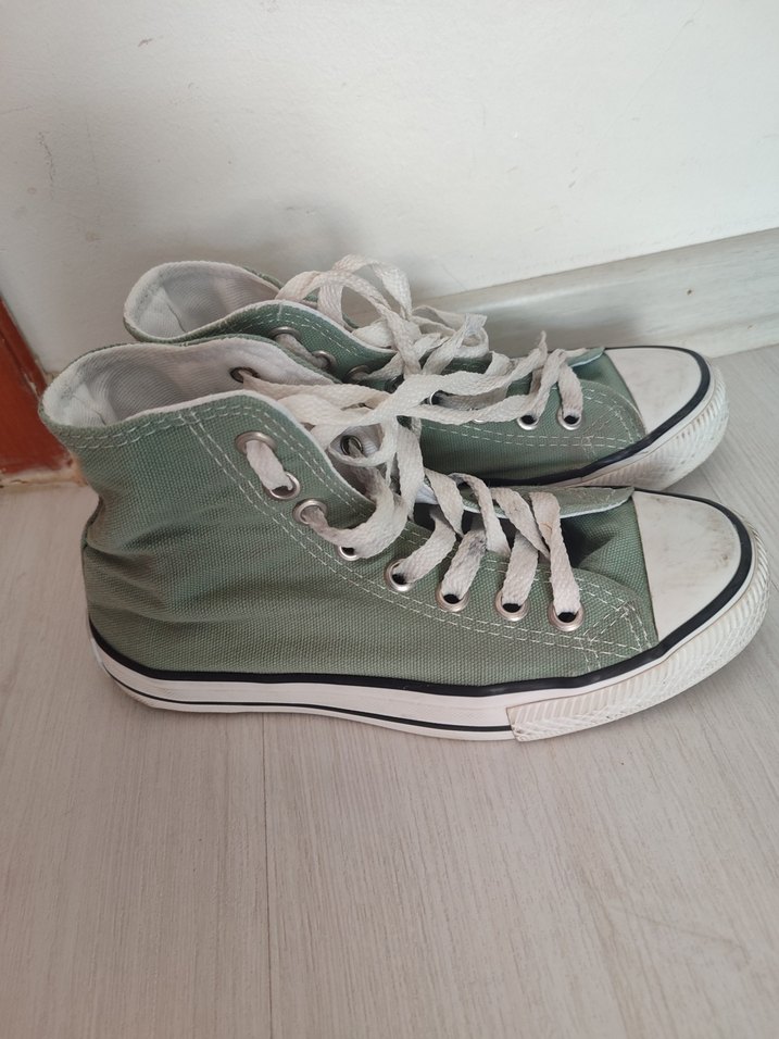 Çagla yeşili renkte convers. 36 numara. Ön kısmında bazı lekeler var. Sadece birkaç defa giyildi.