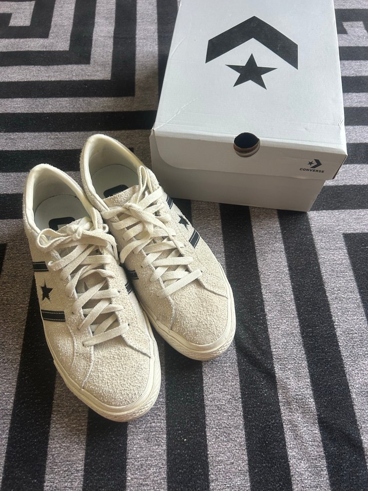 Converse unisex spor ayakkabı, düz kauçuk tabanlı, siyah çizgili sade tasarıma sahiptir. Günlük kullanım ve sokak modasına uygundur. Yedek siyah bağcıklı kutusunda faturalı ve çok az kullanıldı