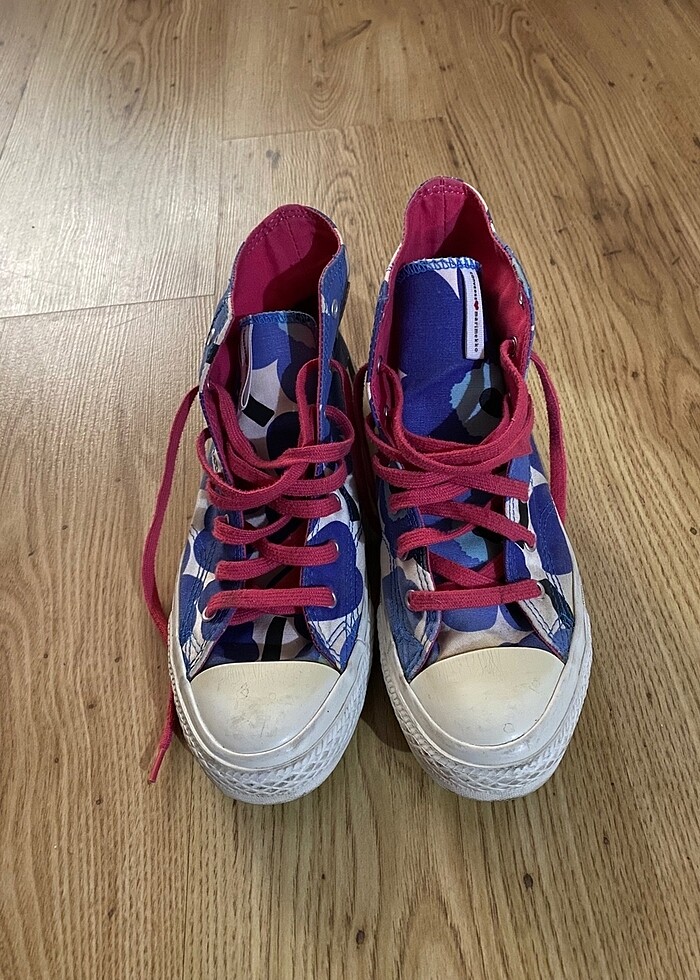 converse x marimekko 2012 koleksiyonundan. nadirdir. cokk severek kullandim ama ayagim buyudugu icin vuruyor su an üzülerek satiyorum