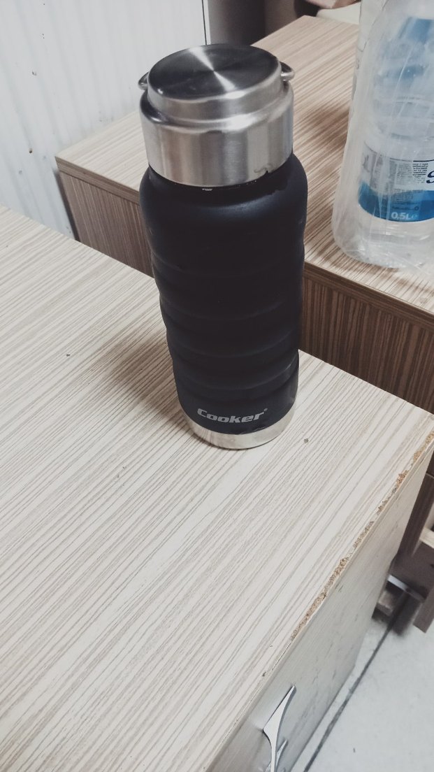 Cooker marka siyah termos şişe, dayanıklı yapısı ve paslanmaz çelik kapağı ile uzun süre sıcak veya soğuk tutar.