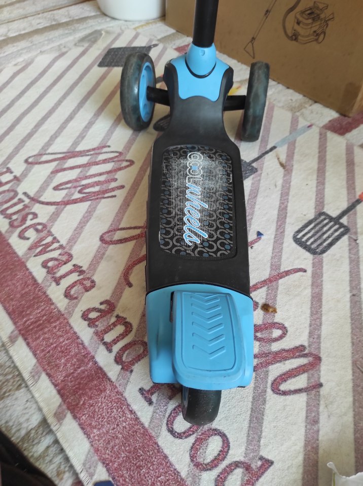 sağlam kaliteli çocuk scooter herhangi bir sorunu kırığı döküğü yoktur.internet sıfır fiyatı 989 tl.ben uyguna bırakıyorum.demonte olarak gönderilir iade kabul edilmemektedir.Koyu mavi renkli, üç tekerlekli ve kaymaz tabanlı çocuk scooterı, küçük yaş grubu için uygundur.