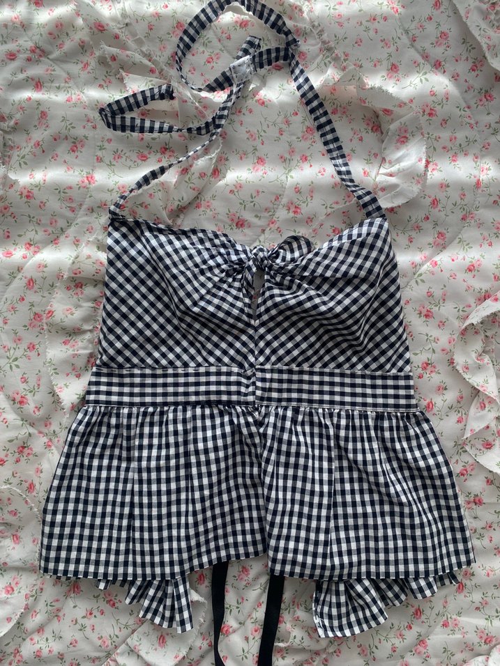 Coquette lolita babydoll gingam desenli üst