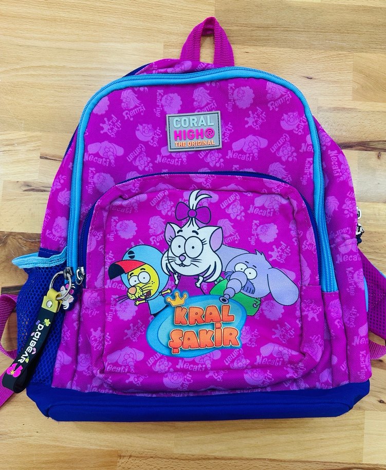 Ürün üç gözlüdür. Bir yanında su koyma cebi bulunmaktadır. Genel durumu iyidir. Resimlerden detayını görebilirsiniz. Mavi fermuarlı ana bölme ve küçük ön cep içerir. Kulplu ve ayarlanabilir askılıdır.