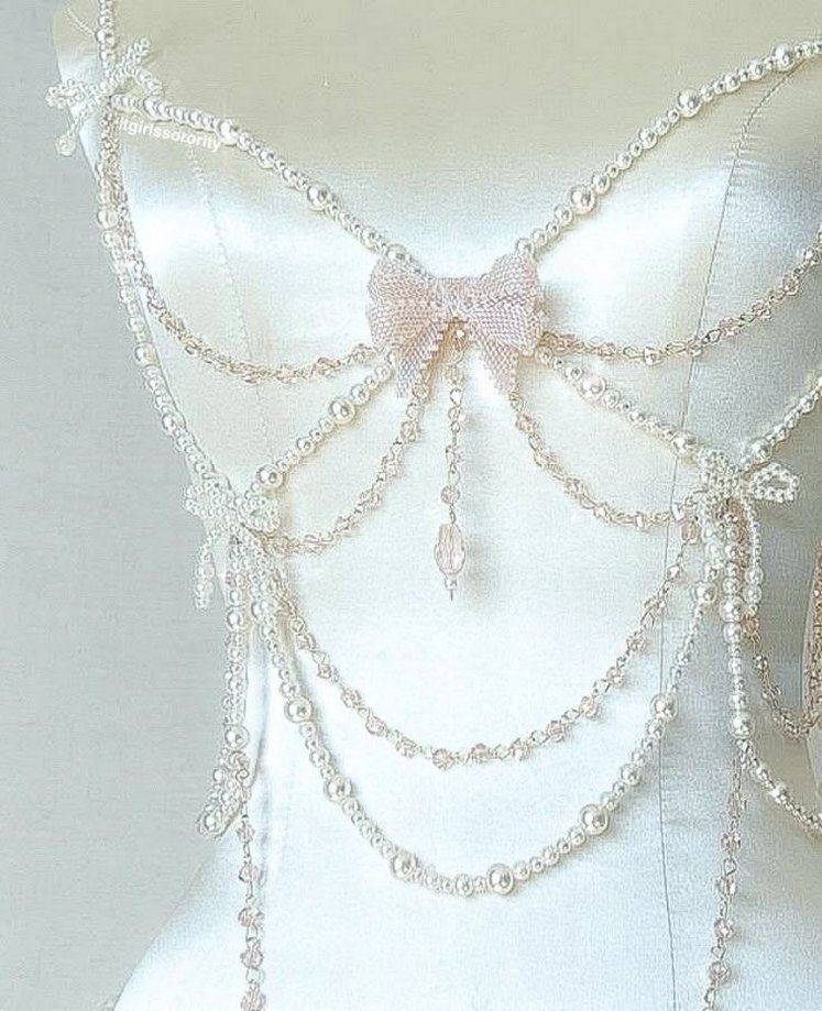 Lütfen ilan açtırarak alın özel tasarım Nakışlı detaylar ve fiyonk süsü bulunan, bohem tarzda boncuk işçiliğiyle beyaz gövde zinciri. ✨