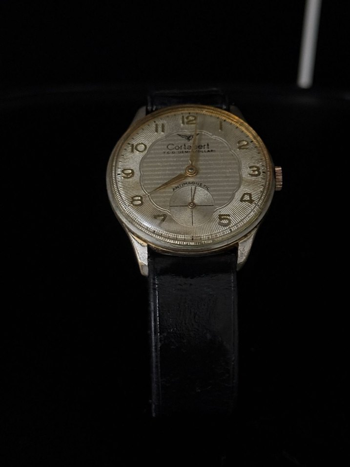 Orijinal Cortébert marka, İsviçre üretimi vintage kol saati satılıktır.cortebertin Türk demir yolları tcdd için özel ürettiği modeldir. Saat yaklaşık 1940–1950 yılları üretimi olup klasik tasarımı ve zarif kadranıyla koleksiyonluk bir parçadır. • Mekanik, kurmalı sistem • Antimagnetic özellikli • Altın kaplama kasa • Paslanmaz çelik arka kapak • Küçük saniye göstergesi • Orijinal Cortébert imzalı kadran