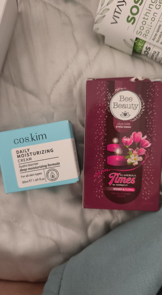 Cos.kim Günlük Nemlendirici Krem, tüm cilt tipleri için derin nemlendirme sağlar. Bee Beauty Glamorous Times, kalıcı odunsu ve floral koku sunar.