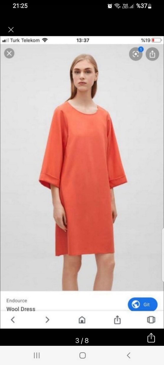 COS Turuncu Midi Rahat Kesim Kısa Kollu Elbise