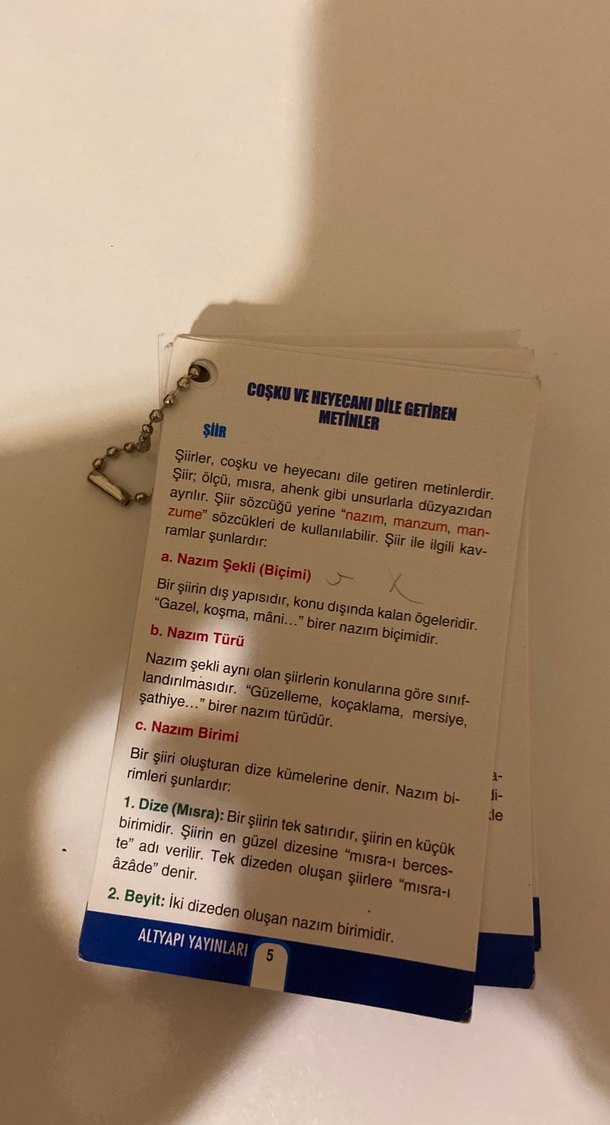 Şiir ve nazım birimleri hakkında bilgi veren, coşku ve heyecanı dile getiren metin kartlarıdır.