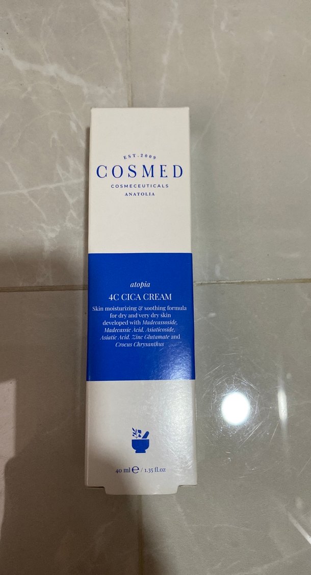 COSMED Atopia 4C Cica Krem, kuru ve çok kuru ciltler için Madecassoside, Madecassic Asit ve diğer bileşenlerle nemlendirici ve yatıştırıcı formüle sahiptir.