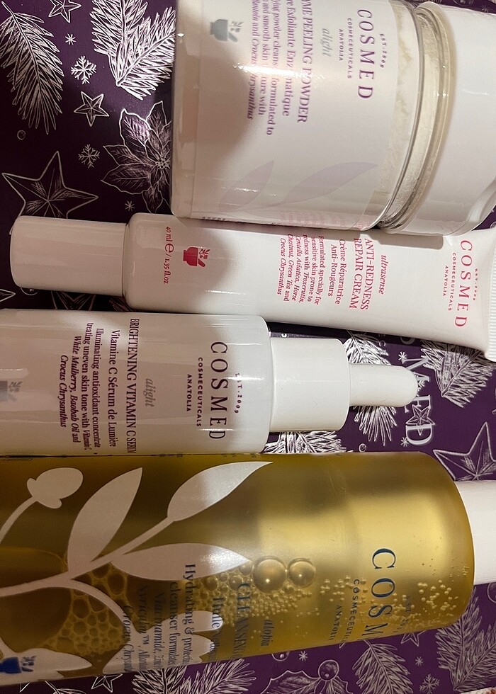 Fule yakın ürünlerdir Cosmed cleainsg oıl 200ml Cosmed enzyme peeling 75g Cosmed c vitamini serum Cosmed anti redness repair cream
