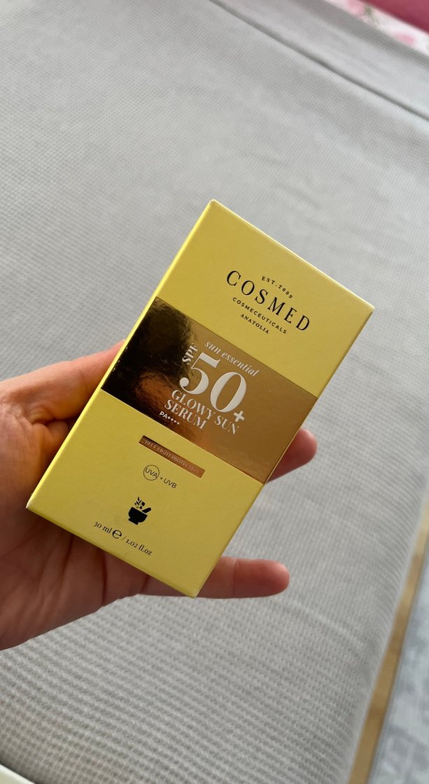 COSMED Glow Sun Serum, SPF 50+ yüksek güneş koruması sağlar ve cildinize parlaklık kazandırır. 30 ml şişede sunulur. ☀️