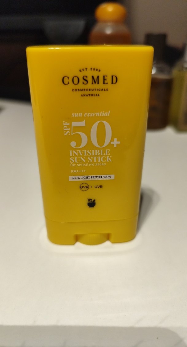 COSMED SPF 50+ görünmez güneş stick, hassas bölgeler için yüksek koruma sağlar. UVA, UVB ve mavi ışık koruması sunar. Kolay uygulanır. ☀️çok az kullanılan üç kısmı hijyen için kesilmiştir