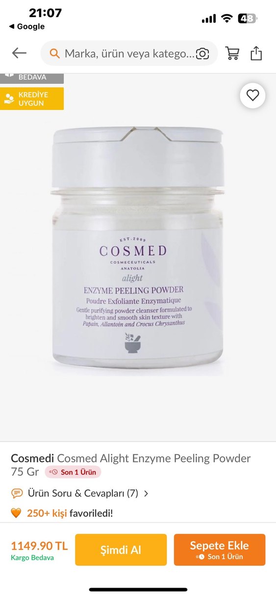 Cosmedi Alight Enzyme Peeling Powder, papain ve allantoin içeren doğal enzimlerle cildi nazikçe arındırır, aydınlatır ve pürüzsüzleştirir. 75 gramlık ambalajda sunulur. ✨