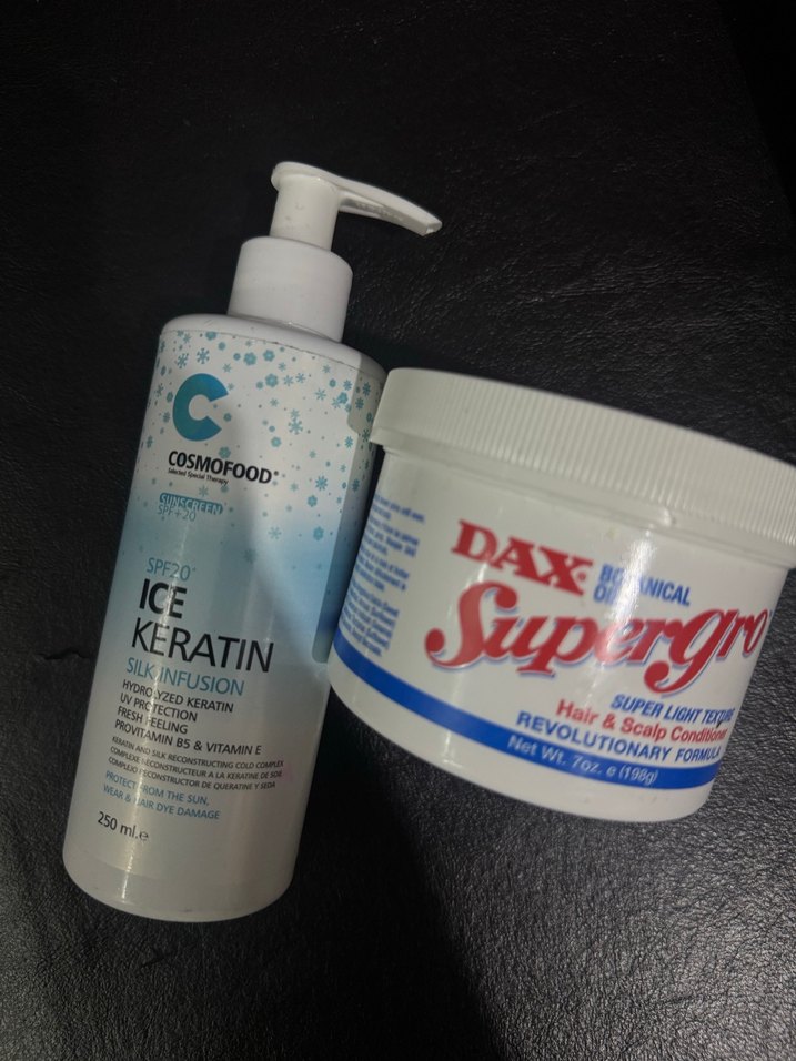 Cosmofood Ice Keratin saç kremi ve Dax Supergro saç ve saç derisi kremi seti. Saçı beslemeye ve bakım yapmaya yardımcıdır. ♀️