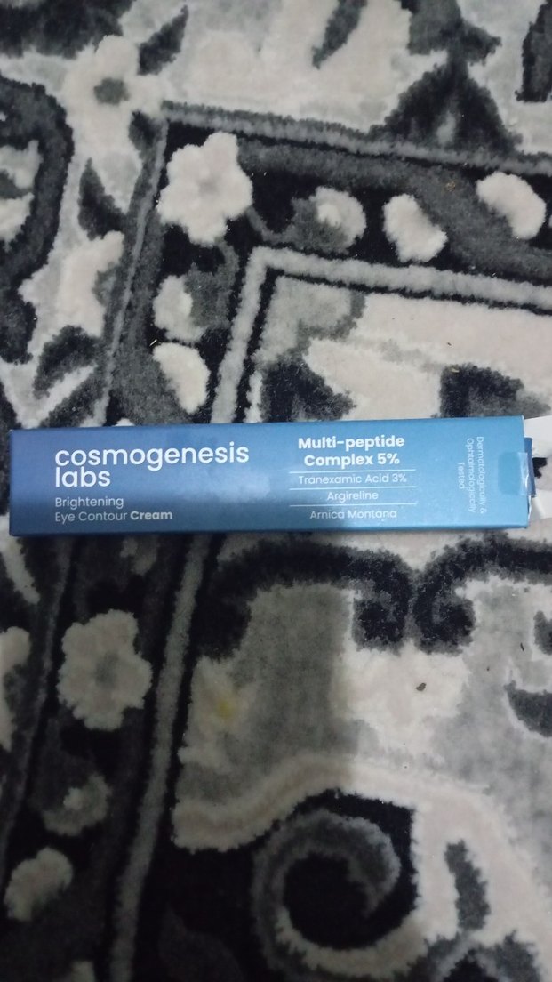 Cosmogenesis Labs göz çevresi kremi, Multi-peptide Complex %5, Traneksamik Asit %3, Arginin ve Arnica Montana içerir. Göz çevresini aydınlatır. ️