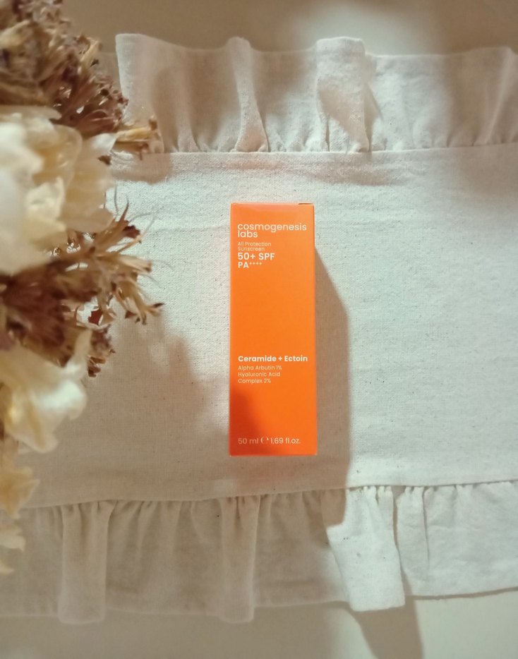 Cosmogenesis Labs güneş koruyucu, SPF 50+ koruma sağlar ve cildi nemlendirip güneş hasarına karşı destek olur.