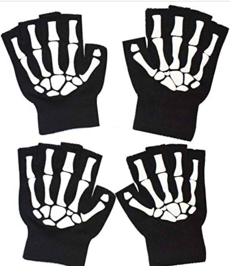 Cosplay İskelet Kostümü 4 Adet Eldiven. Sıfır kullanılmamış üründür. Yurtdışından getirilmiştir. Örme dikişli polyester malzeme - Eldiven standart bedendir ve esnektir herkese uyar. Pakette 4 adet eldiven vardır.