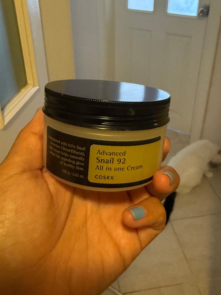 COSRX Advanced Snail 92 All in one Cream, %92 salyangoz mukusuyla cildi onarır ve nemlendirir. Benim cildimle anlaşamadı. Çok az kullanılmıştır. Ürün Kore’den alınmıştır.